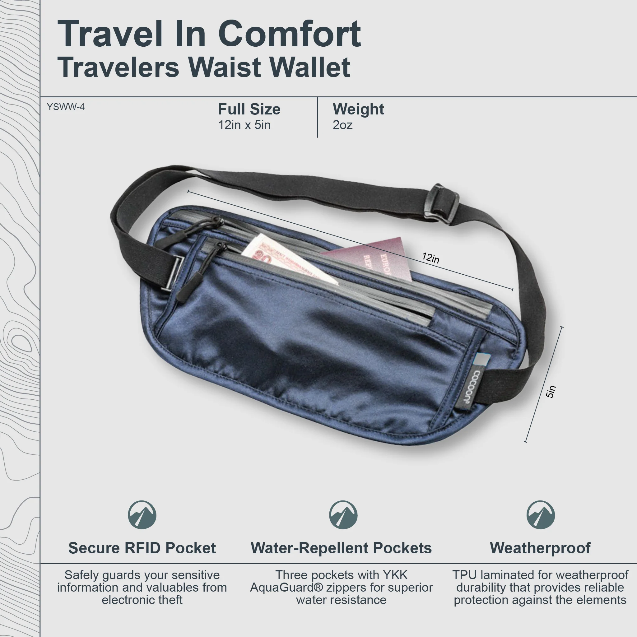 - Wears discretely under clothing —travel smart, travel light.